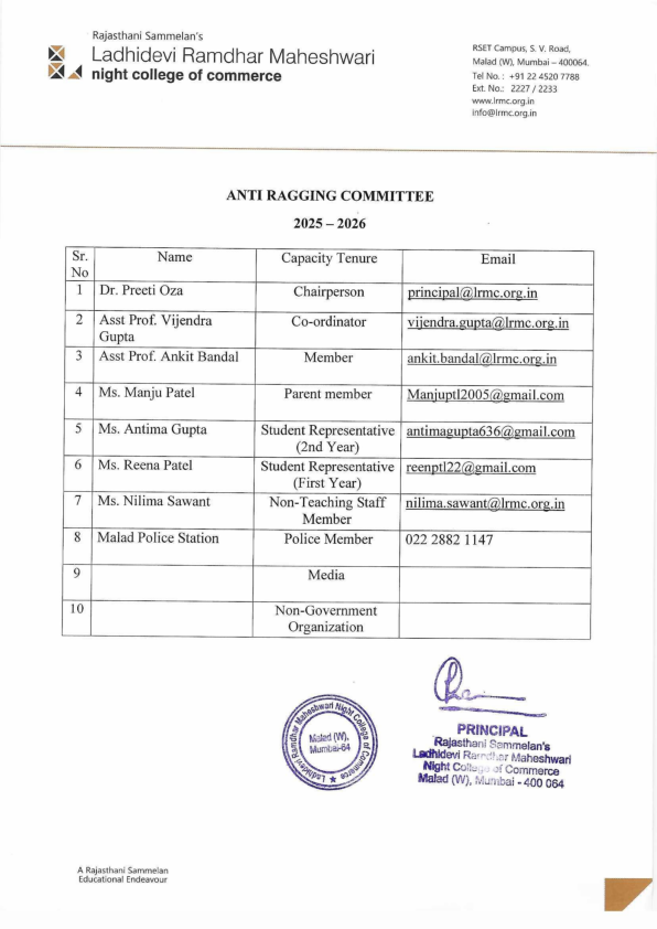 - Prevention of Ragging: The primary objective of the cell is to prevent incidents of ragging through awareness, education, and proactive measures.