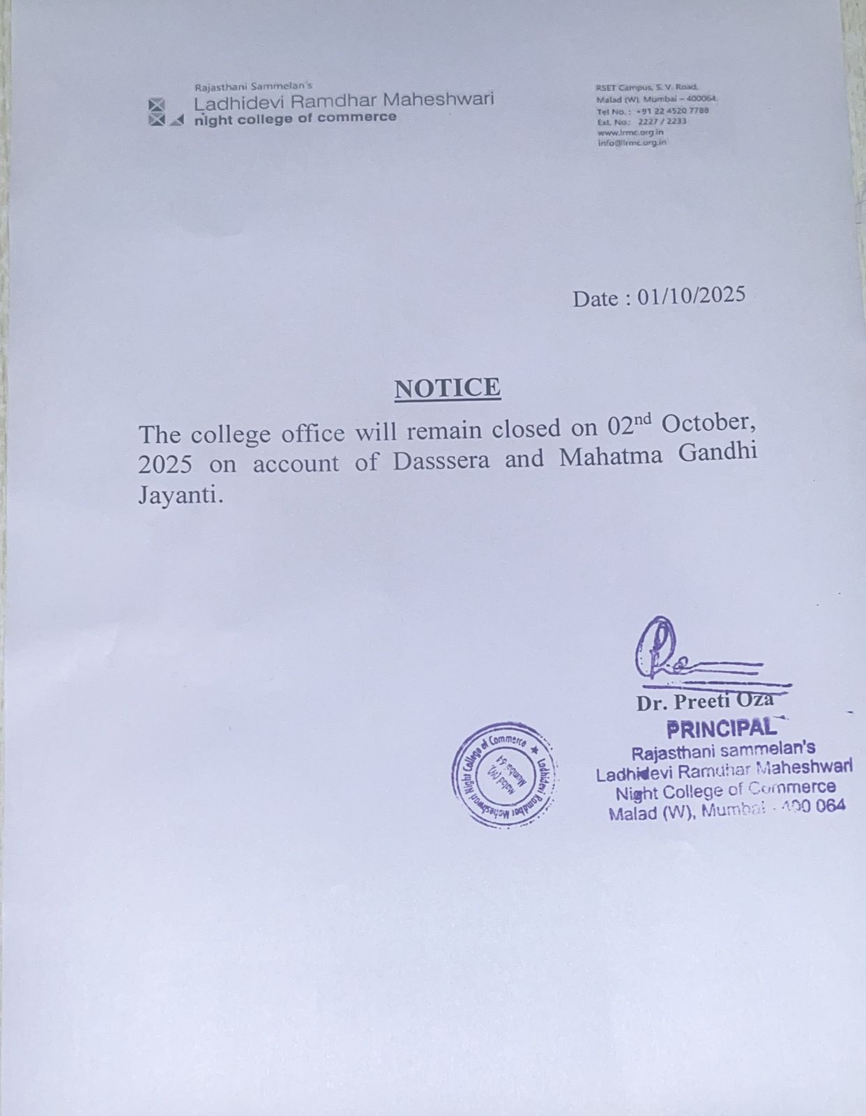 - Exam Time Table OCT 2025 ATKT SEM – I NEP